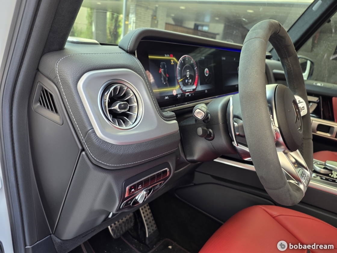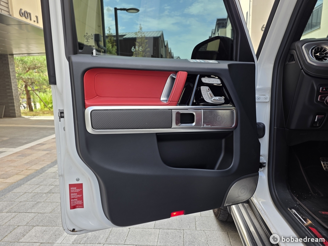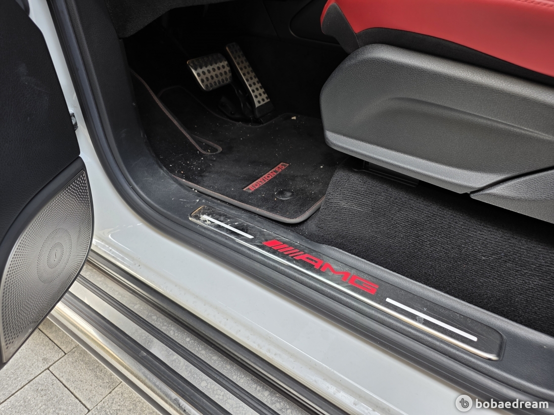- 특징: 스테인리스 스틸 도어 실 트림에 레드 컬러의 'AMG' 레터링이 새겨져 있으며,