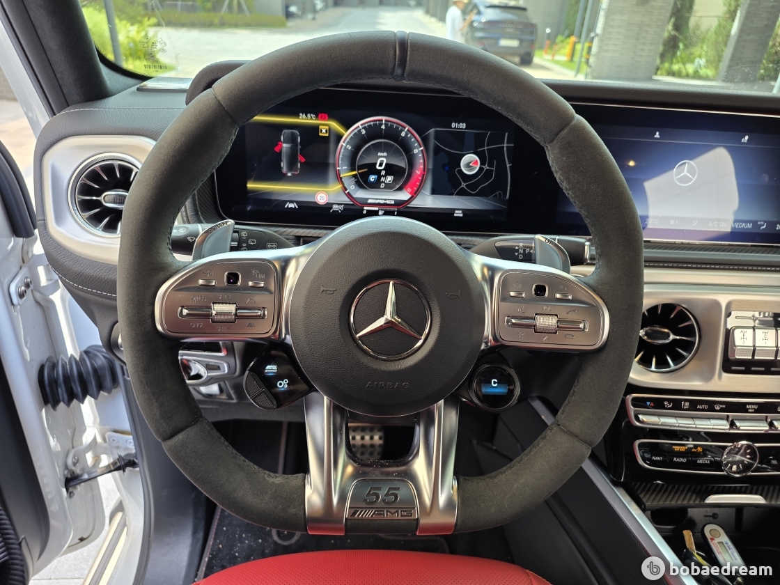 퍼포먼스 스티어링 휠에도 ‘AMG’와 ‘55’가 각인됐다.