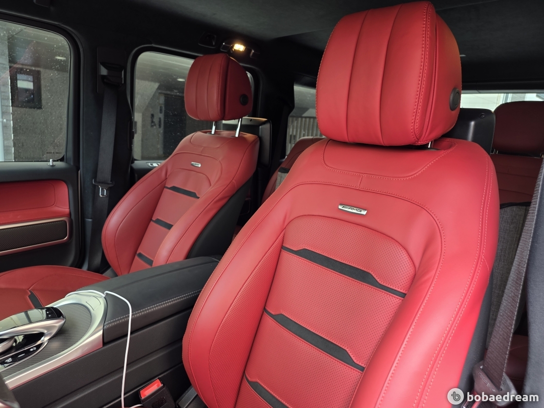 - 시트: 클래식 레드와 블랙 컬러의 나파 가죽 시트를 조합해 포인트를 주었습니다.