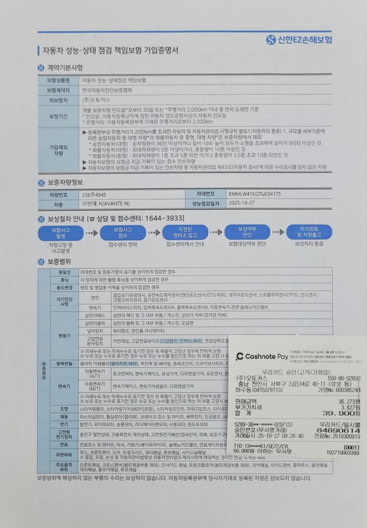 》고객의 알권리를 위하여 성능기록부+사고이력+출고당시 옵션표 제공합니다.