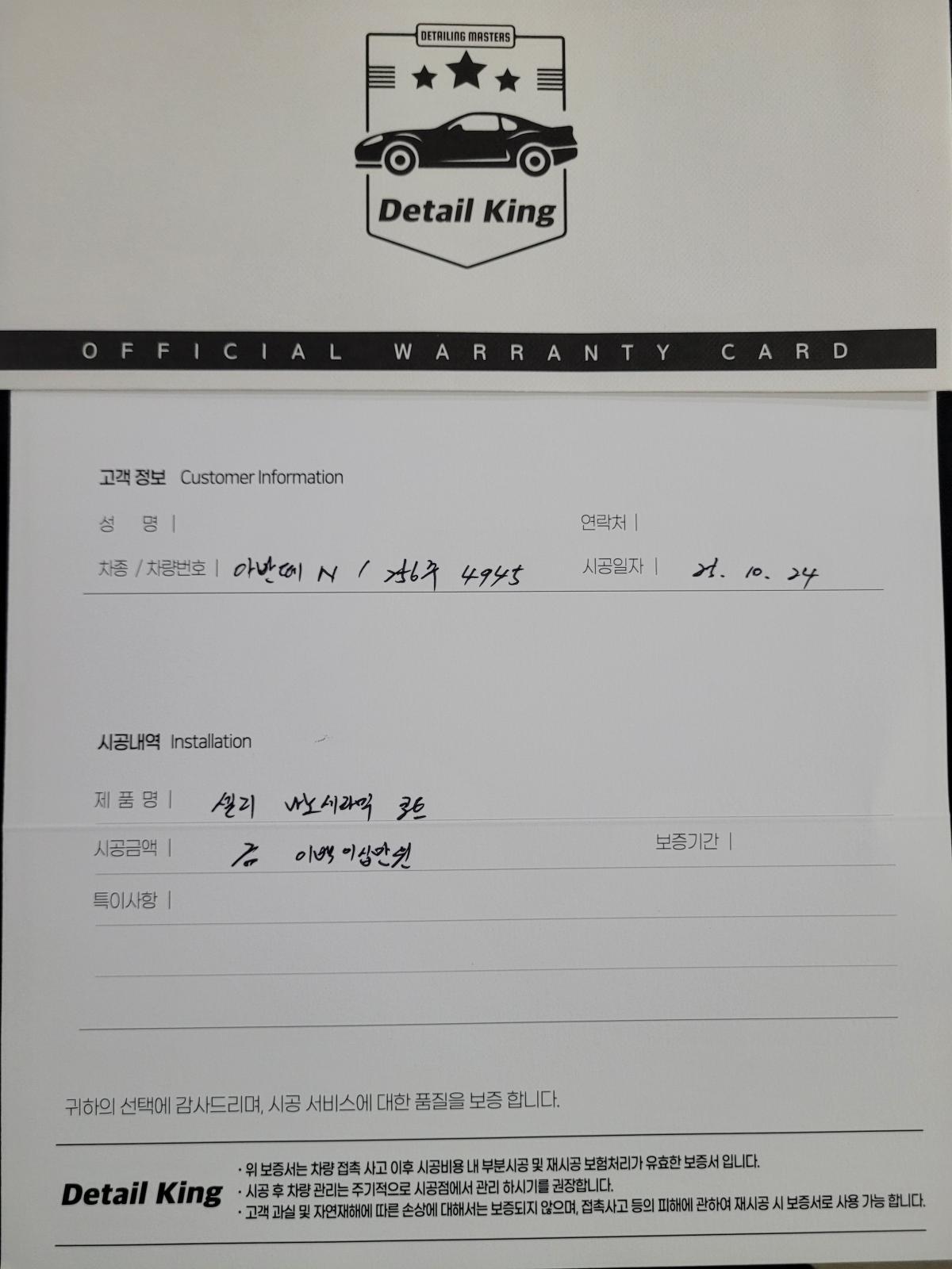 - 디테일킹 셀리 나노세라믹 코트 작업차량_보증서 보유
