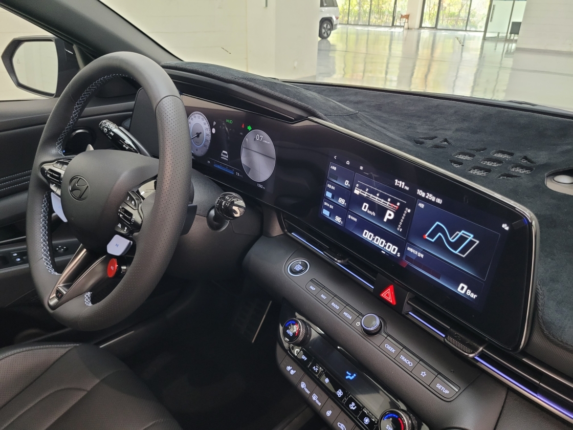실내 공간 역시 스포티한 모습이다. 아반떼 고유의 구성을 그대로 이어가면서도 N의 감성이 더해지며 ‘감각