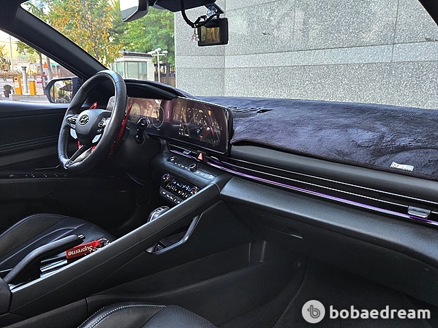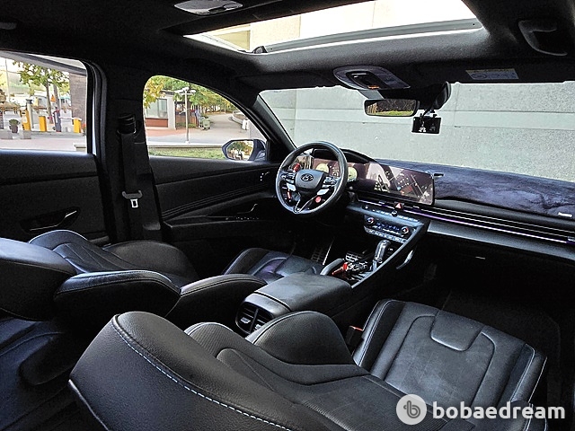 실내 공간 역시 스포티한 모습이다. 아반떼 고유의 구성을 그대로 이어가면서도 N의 감성이 더해지며 ‘감각