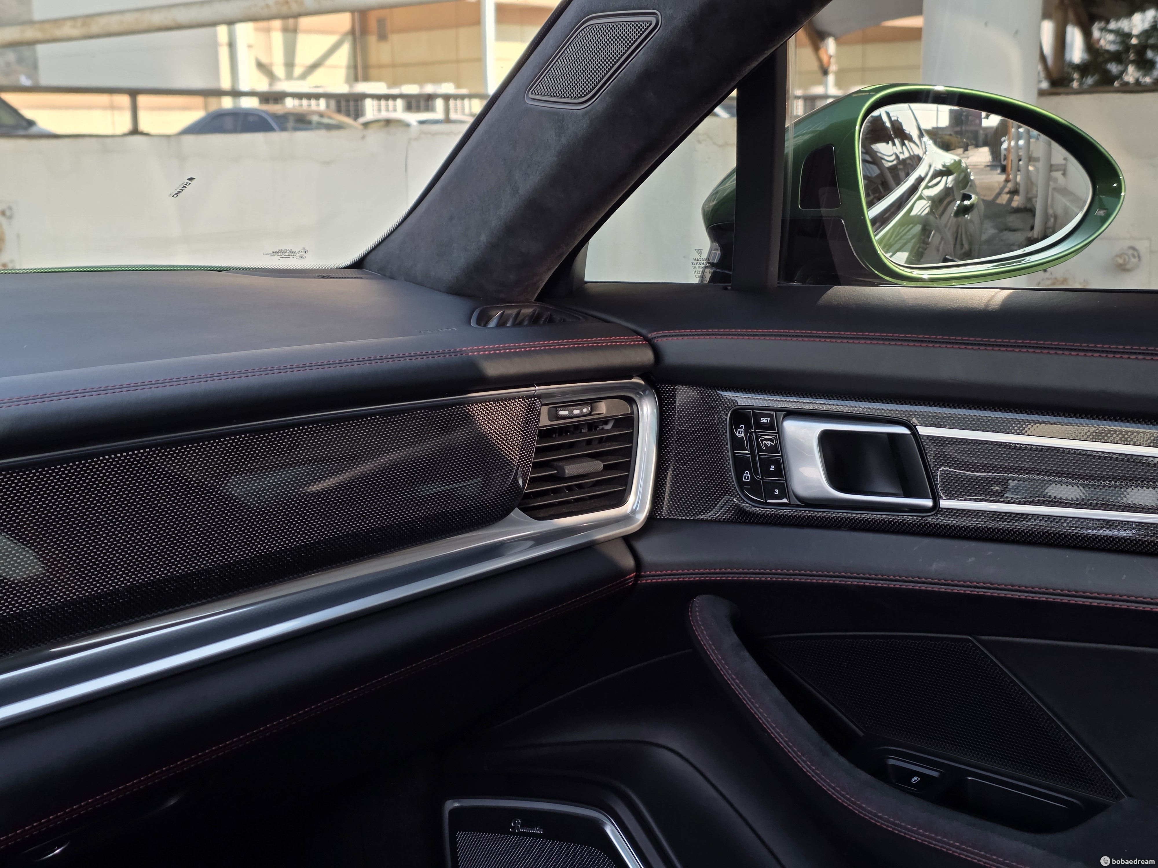 검정색으로 도장된 새틴 마감의 20인치 파나메라 디자인 휠을 기본 적용하며 블랙 알칸타라 소재와