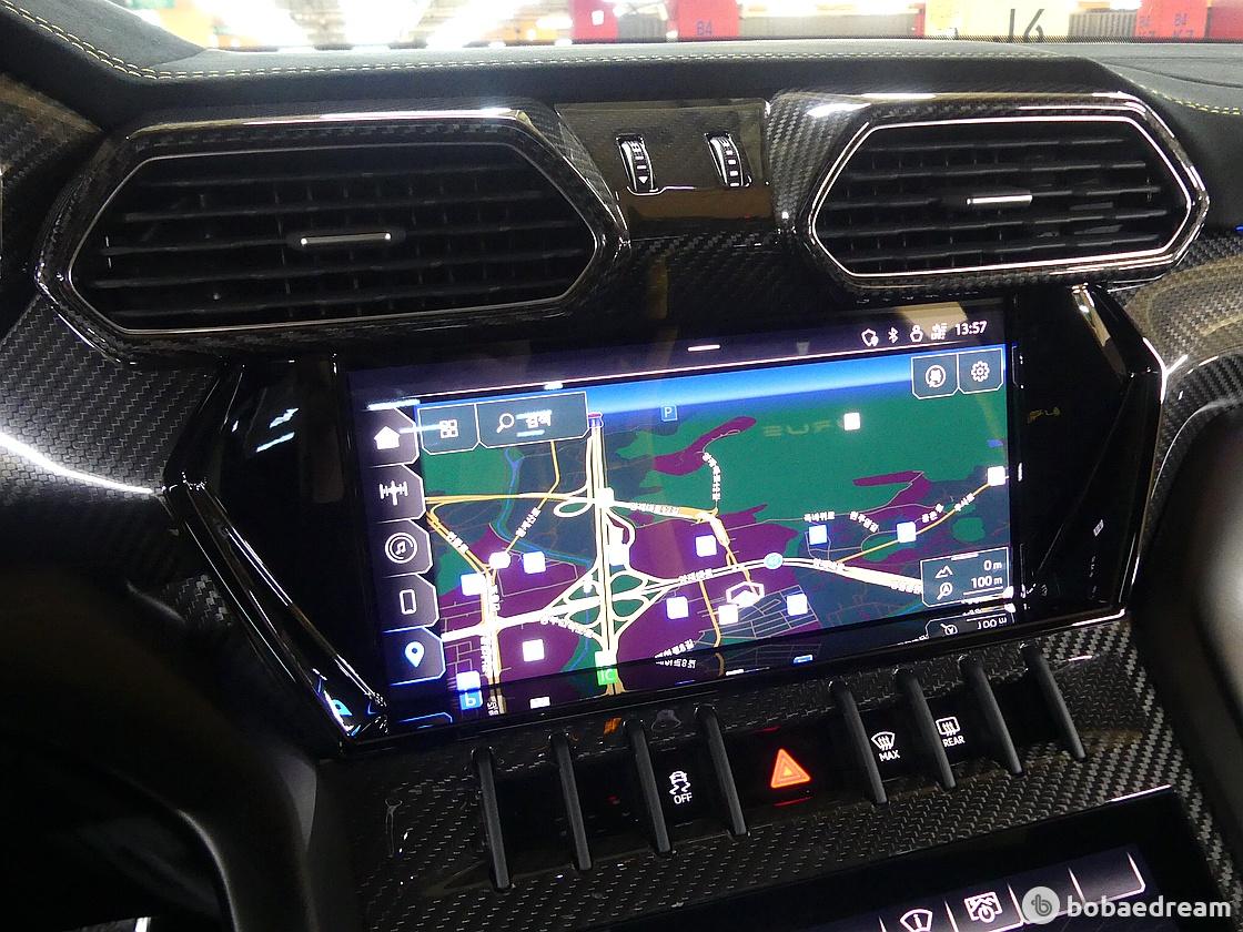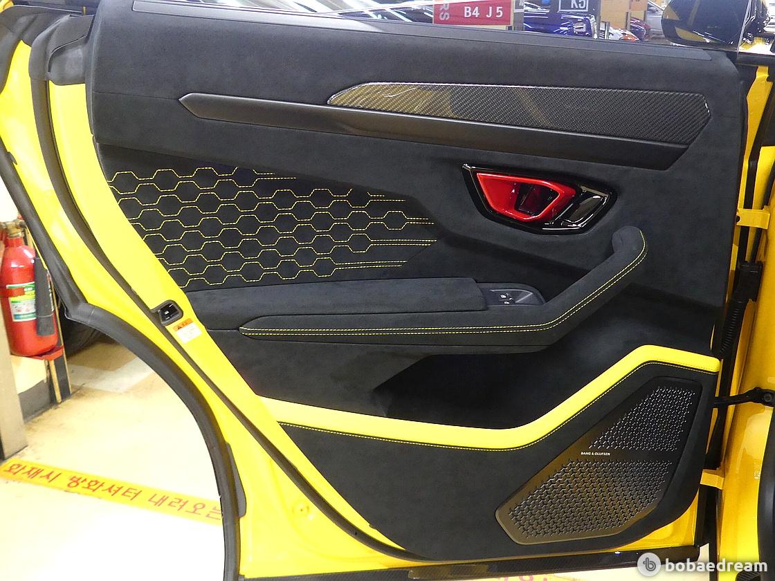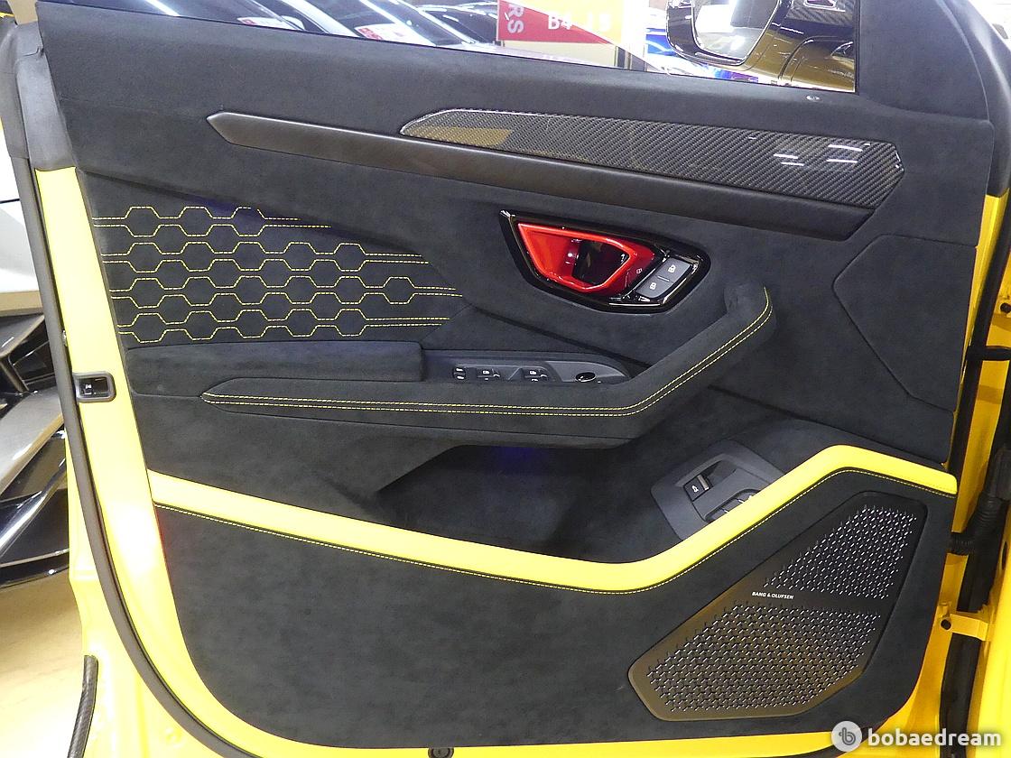측면에서 보면, 전면 돌출부와 리어 윙, 리어 범퍼가 낮아진 차체를 더욱 강조한다. 우루스 퍼포만테의 보닛은