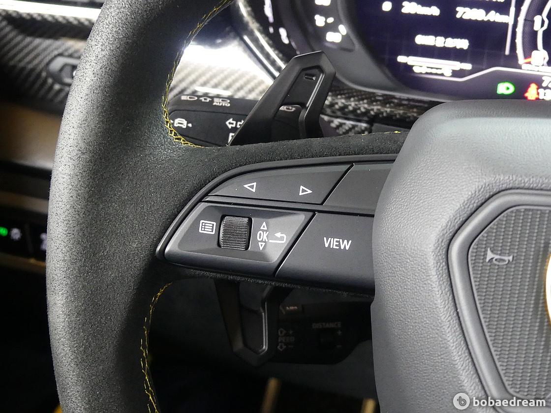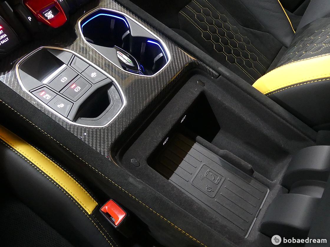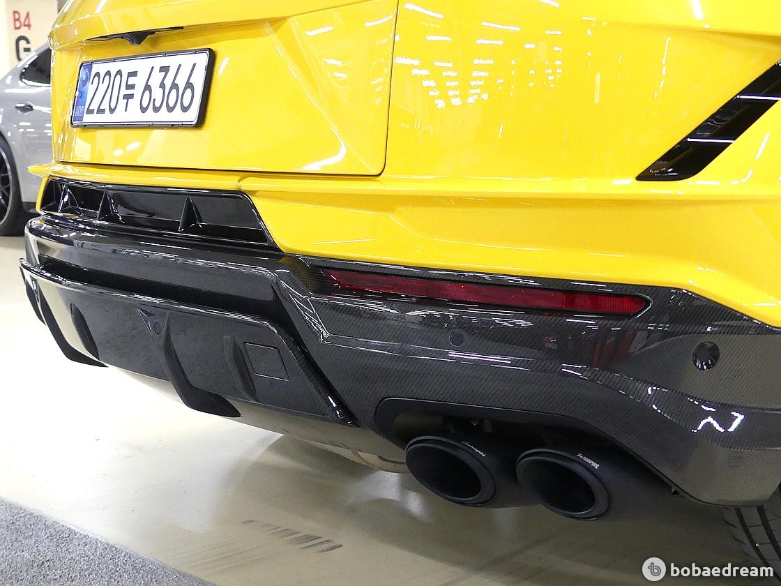 한 디자인이 특징이다. 리어 스포일러에는 아벤타도르 SVJ(Aventador SVJ)에서 영감을 받은 탄소섬유 핀이
