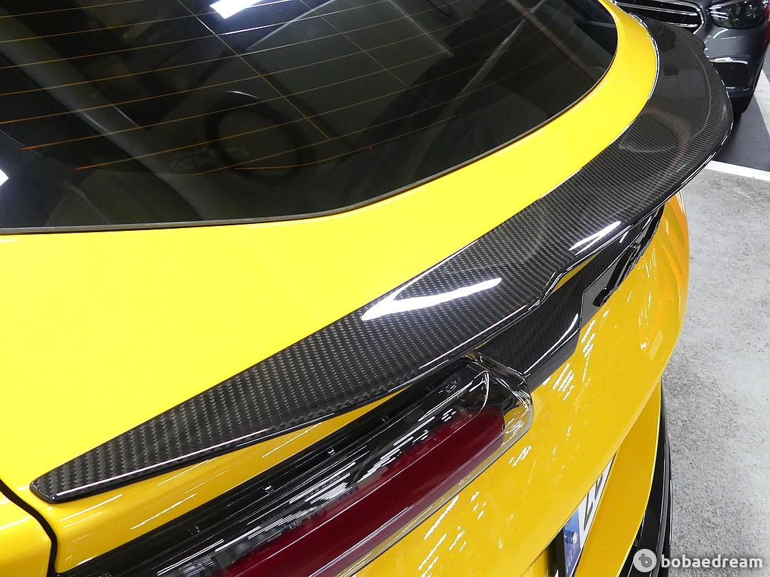 경량 탄소 섬유로 제작됐다. 후드 라인에서부터 프론트 범퍼까지 길게 뻗은 라인에는 공기 배출구가 추가됐다.