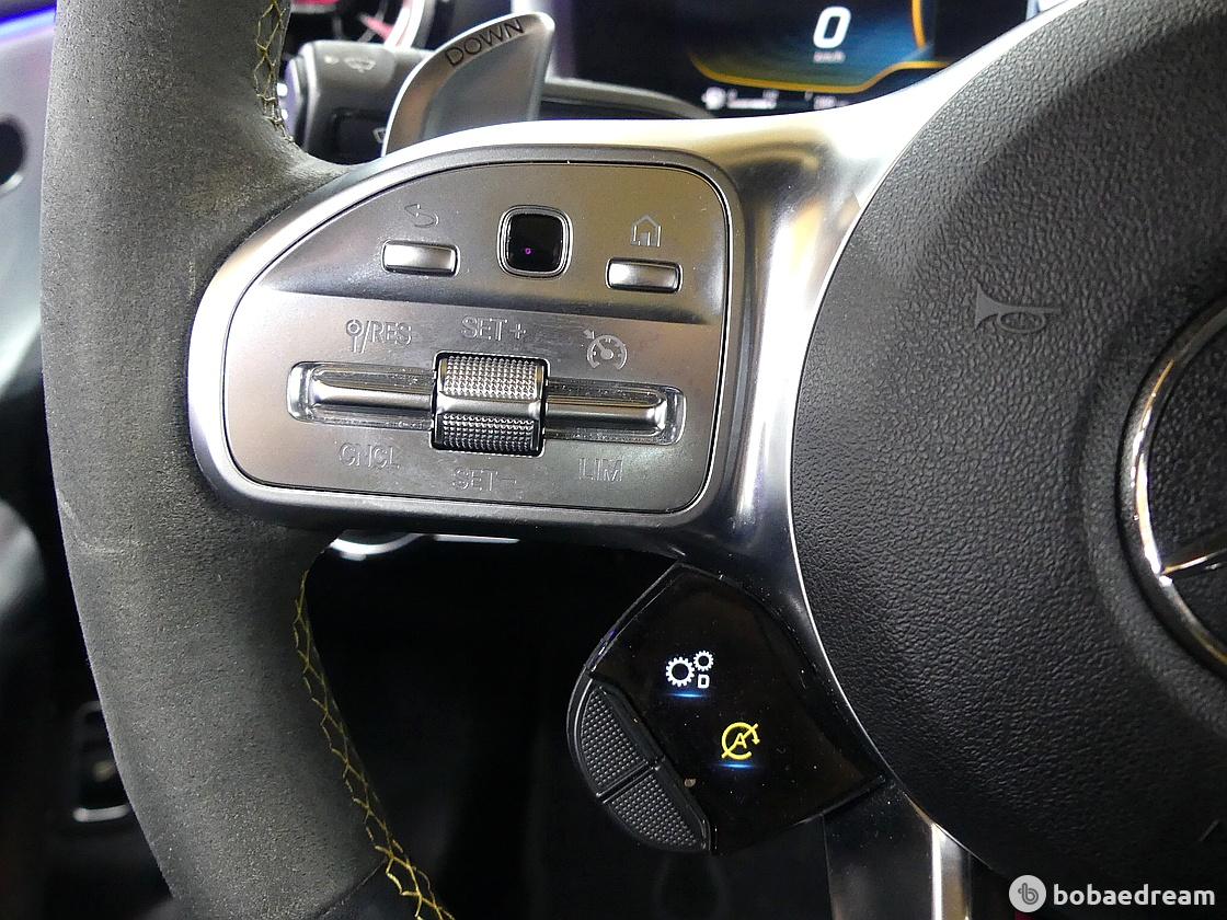 고급 나파 가죽으로 장식된 AMG 다기능 스포츠 스티어링 휠은 장착된 버튼으로 주행 모드 및 기타 AMG 기능을