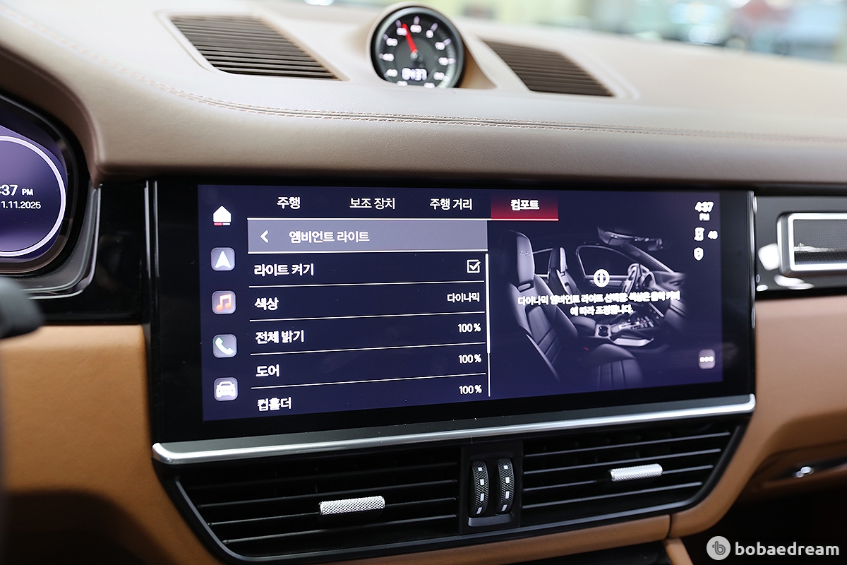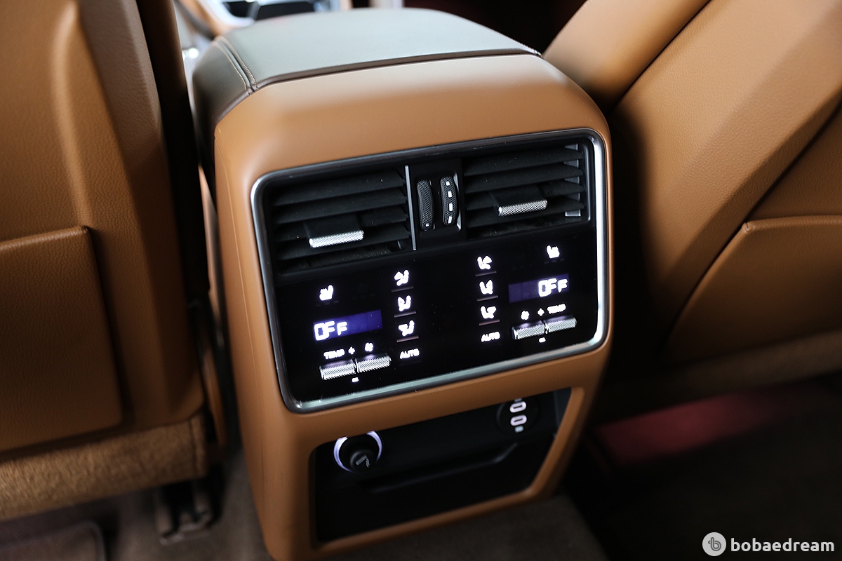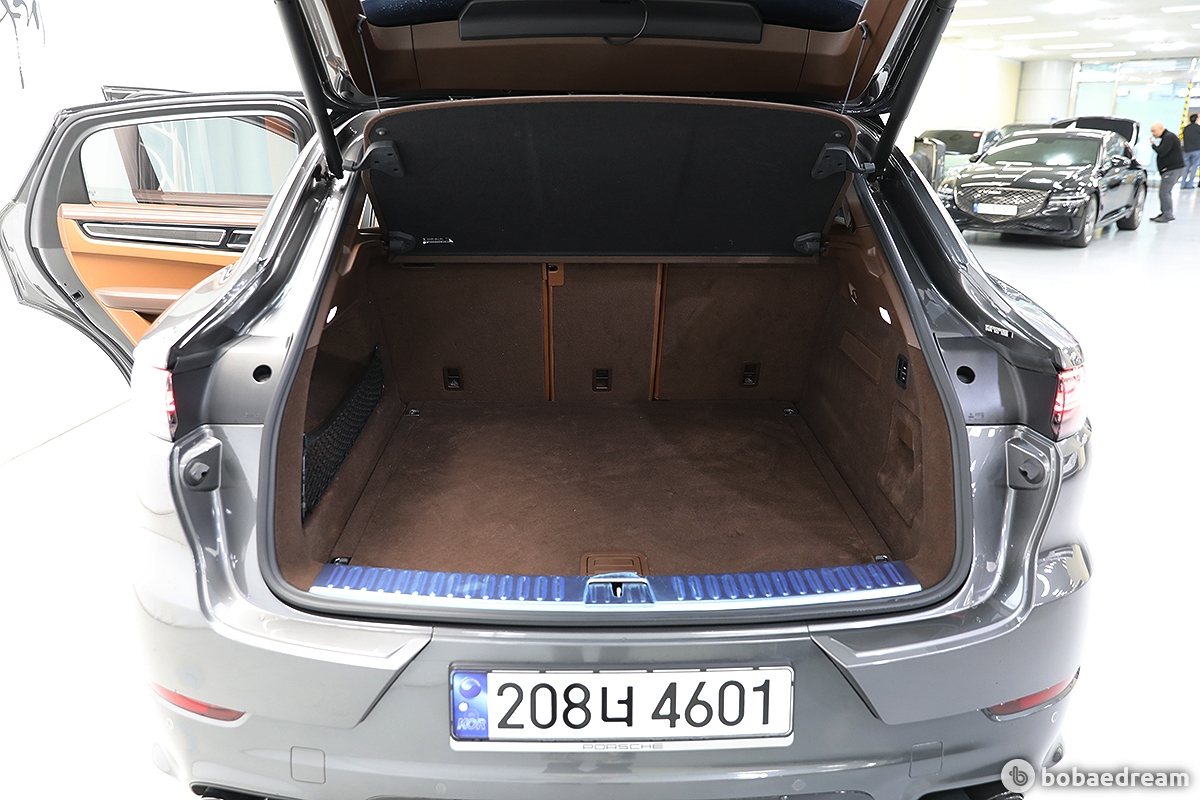 뒷좌석은 2개의 개별 시트로 사용 가능하며 컴포트 시트도 고를 수 있다. 카이엔보다 30밀리미터 낮아졌지만